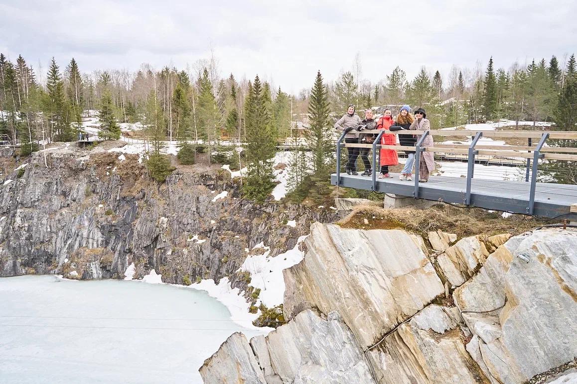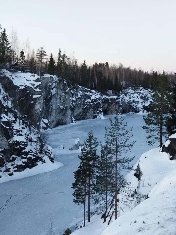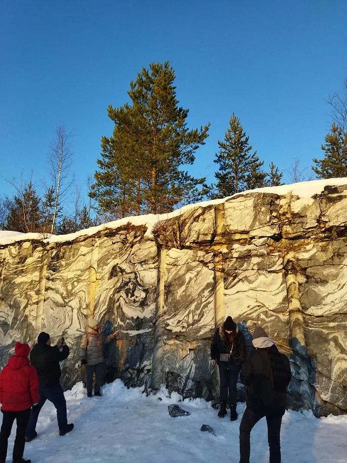 По прибытию в горный парк Рускеала нас ждет экскурсия вокруг чаши мраморного каньона и рассказ гида об истории этого уникального места. Раньше здесь добывали мрамор, который использовали в разных целях, в том числе для украшения зданий и дворцов в Санкт-Петербурге. Затем карьер был затоплен и превратился в красивейшую локацию.
