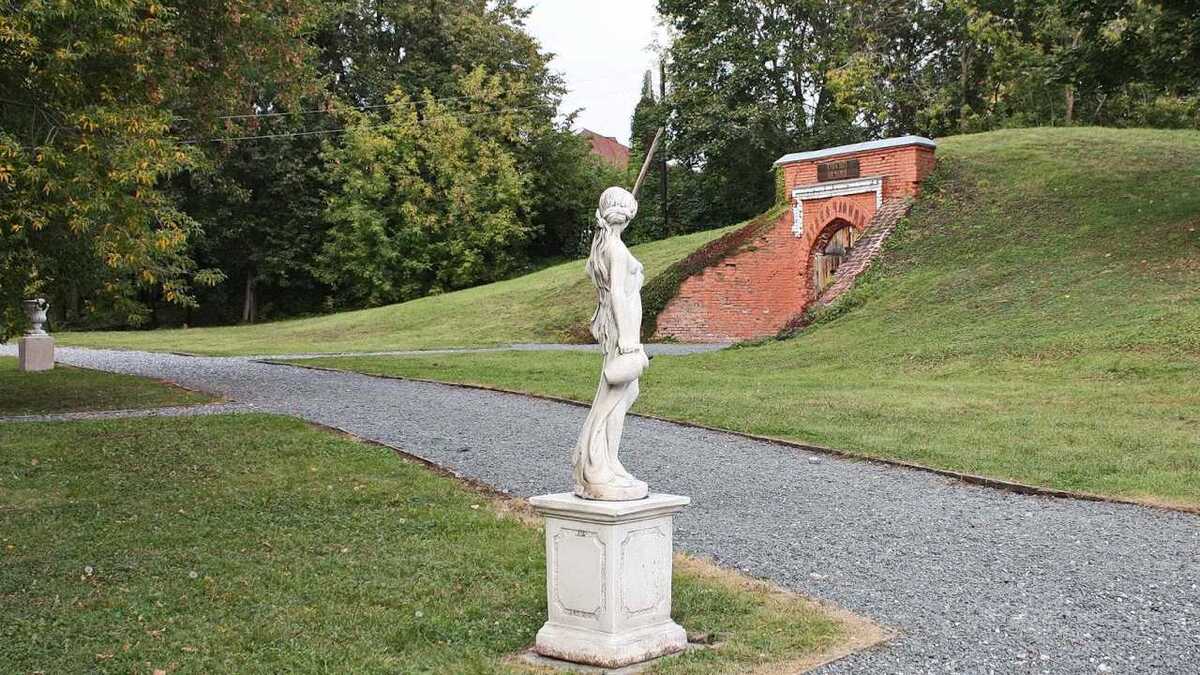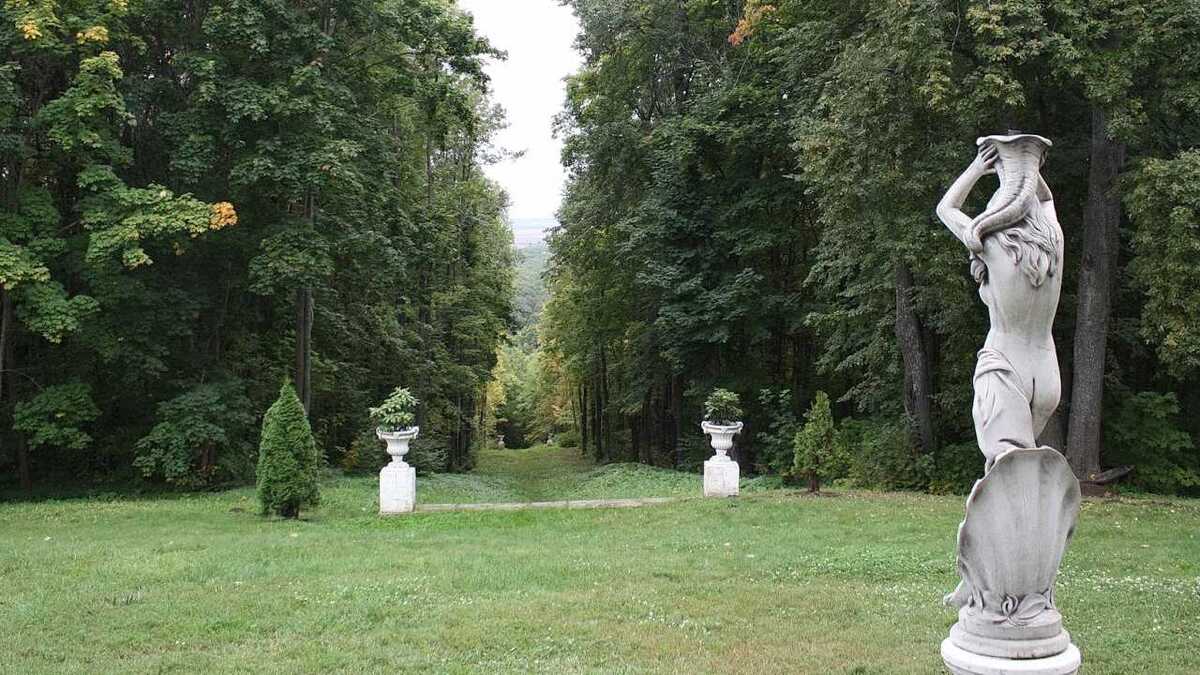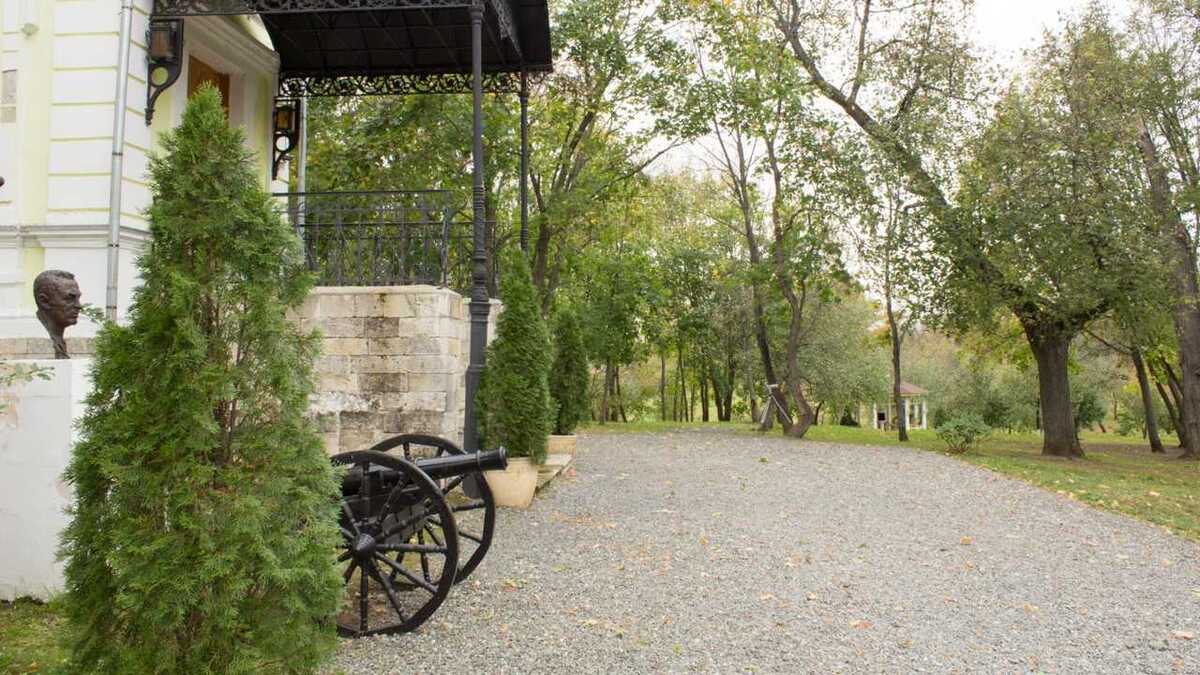 Вокруг дома - великолепный парк с беседками, лавочками, усыпанными гравием дорожками. Рядом - огромный виноградник, яблоневые сады, особенно прекрасные весной и осенью. Стоит спуститься вниз, к старинному пруду с многочисленными каньонами и перекидными мостиками. А по крутой просеке, уходящей вниз от барского дома в противоположную от пруда сторону, можно дойти до Пьяны.